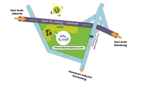 Pemakaman Al-Azhar Memorial Garden ada di lokasi yang strategis dengan akses Tol Layang Jakarta – Cikampek. Hanya butuh 5-10 menit dari exit toll karawang timur