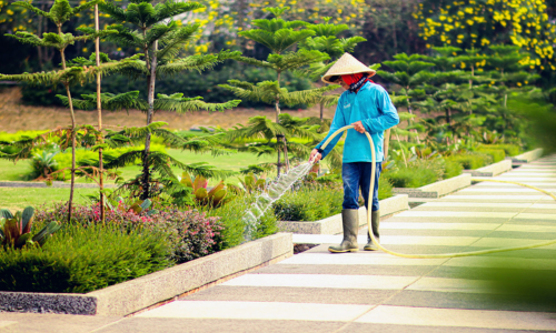 Perawatan rumput di lakukan secara rutin, penyiraman biasa dan penggunaan penyiraman Sprinkler irrigation setiap zona